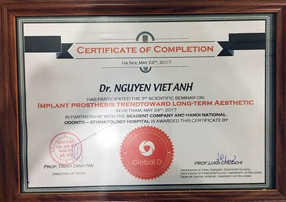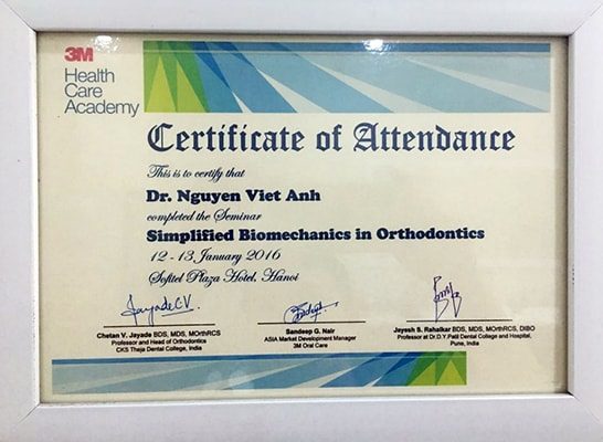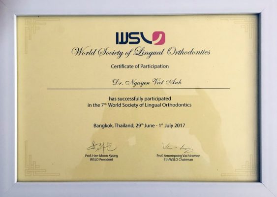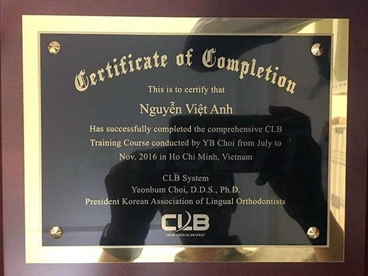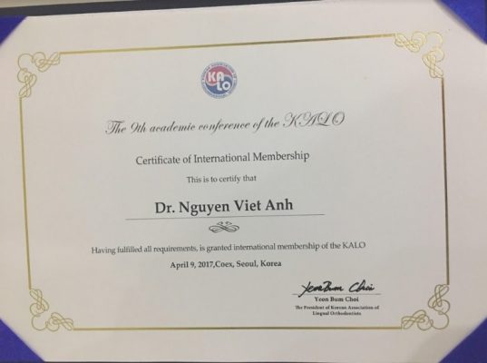 Là bác sĩ hoàn thành khoá Chỉnh nha mặt lưỡi nâng cao của giáo sư Didier Fillion (Top đầu thế giới) và Ryuzo Fukawa (Top đầu Châu Á) tại Đại học Paris V, Cộng hoà Pháp