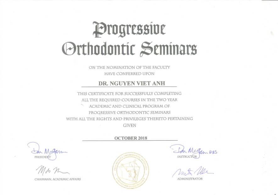 Tốt nghiệp chương trình bác sỹ chỉnh nha Progressive Orthodontics Seminars của Mỹ